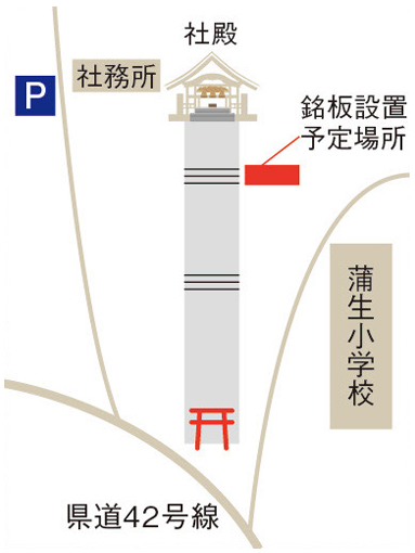 お車でお越しの方は、そのまま車で鳥居をくぐっていただき参道を進んでいくと、社務所の奥に駐車場があります。